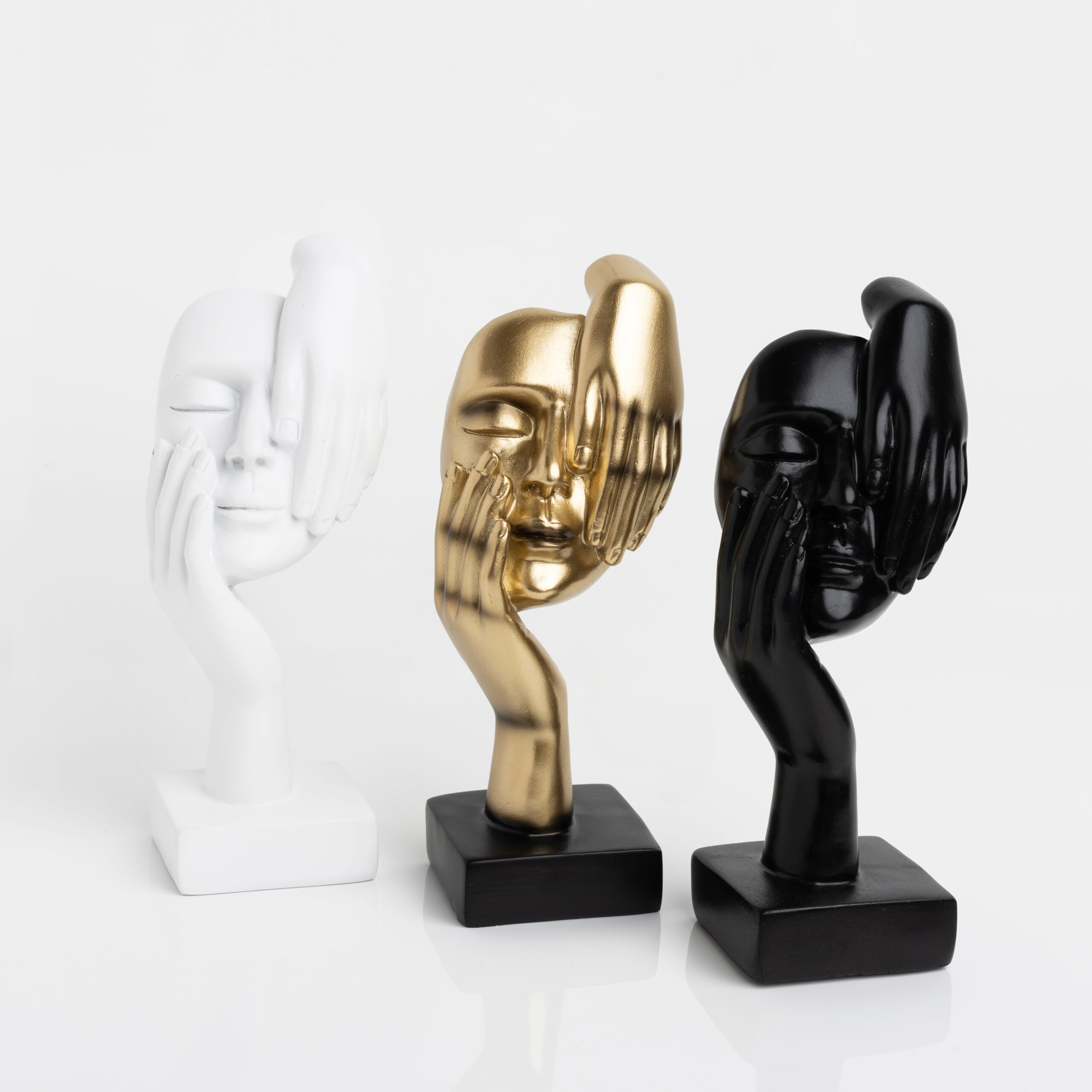 Τρίπτυχο διακοσμητικό εσωτερικού χώρου που αναπαριστά τη σκέψη και τη σοφία. Ένα εμβληματικό γλυπτό φτιαγμένο από οικολογική ρητίνη. Σε τρεις παραλλαγές χρωμάτων συνυφασμένες ματαξύ τους. Ιδανικό δώρο για κάποιον που ασχολείται με την τέχνη ή γνωρίζει γιαυτή. Η διάσταση τους είναι 17 x 6 cm.
